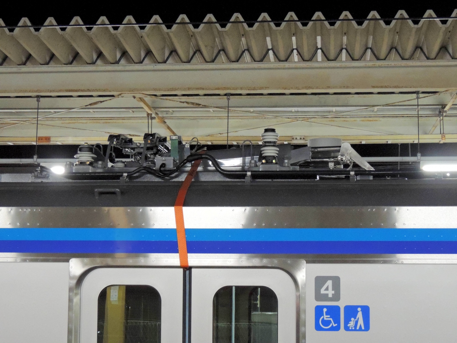 【JR東日本】E131系800番台 仙石線 ‹センN3編成 配給輸送› 牽引されている車両は、直流電車により、黒磯からは交流区間へ通過することで自走できないため、パンタグラフは、ベルトで固定されています。