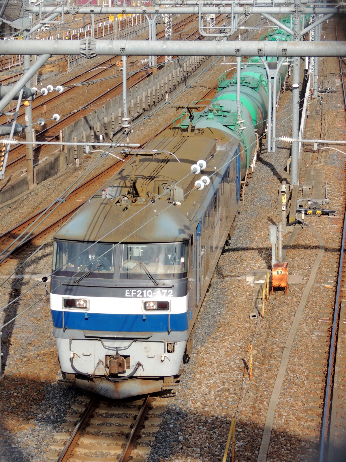 【JR貨物】桃太郎 ‹タキを牽引› この日2026/1/11㈰≠ヘ、特大貨物があるとのことで自転車@クロスバイクに乗ってサイクリングをしてきましたଘ(੭ˊ꒳ˋ)੭✧始めに大栄橋より見渡し、桃太郎@EF210-172号機+タキです。列車番号:8584レ